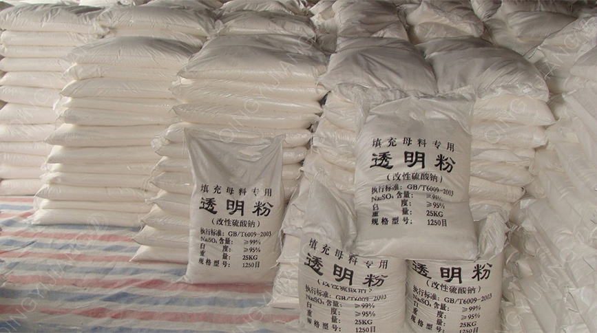 The filler masterbatch prepared by "A masterbatches modified with sodium sulphate and its preparation method" in 2016 is a practical and cost-effective filler modified transparent masterbatch. Currently, sodium sulphate has been used in a large number of applications in the plastics industry, especially in plastic products with transparent properties.